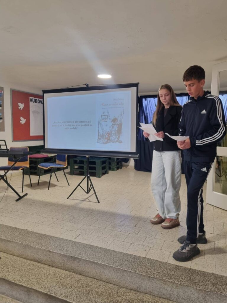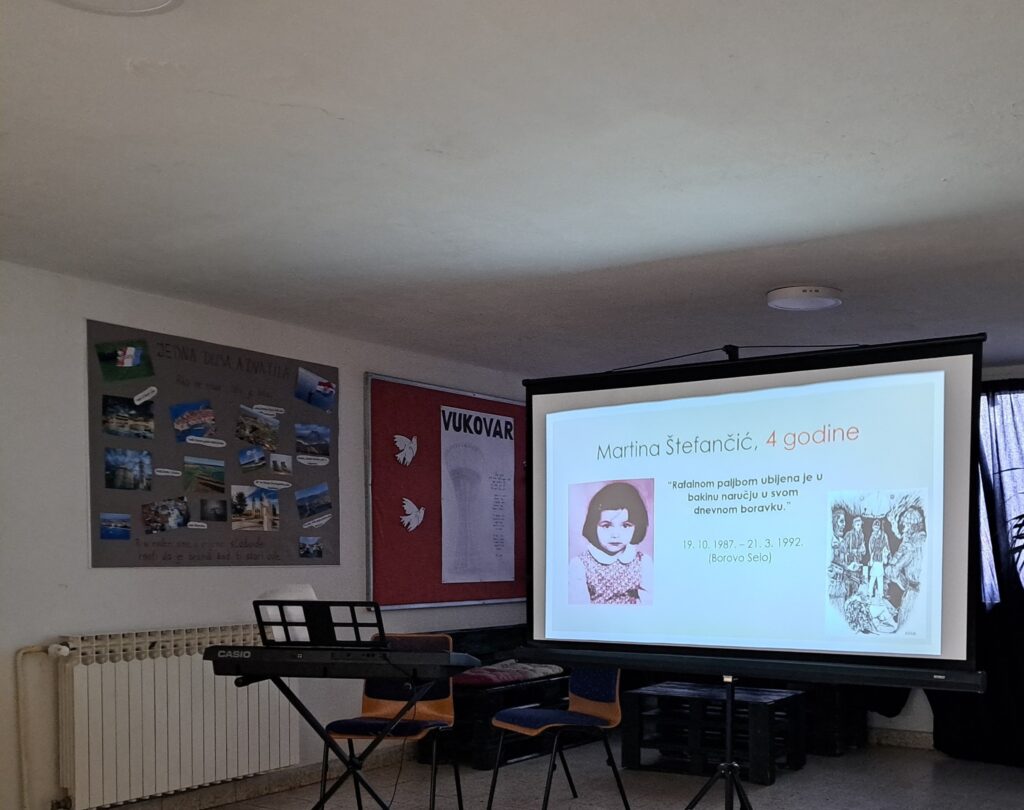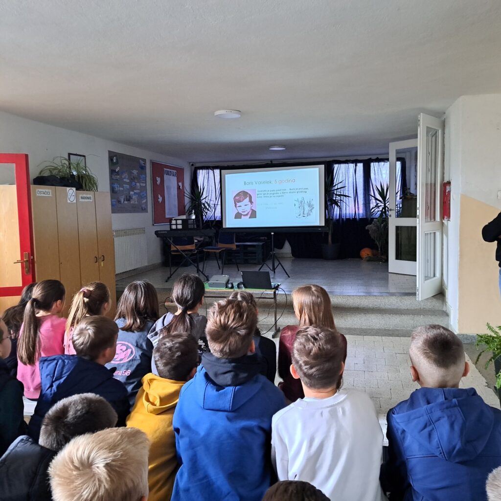 Obilježavajući Dan sjećanja na žrtve Domovinskog rata i Dan sjećanja na žrtvu Vukovara i Škabrnje pogledali smo film “Pet minuta za Vukovar” te razgovarali o povijesnim činjenicama. Kroz ppt “Prekinuto djetinjstvo”, na temu stradanja vukovarske djece, vodili su nas učenici devetog razreda Ivana Pavković i Branko Mihalj. Naše osmašice su cijeli događaj obogatile izvedbom domoljubnih pjesama.